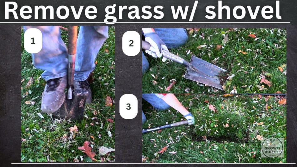 Using a shovel to remove grass isn’t easy, but it is effective and you get instant results. Nonetheless, you may want to do some stretches before undertaking this endeavor. But in general, the simplified process is as follows
