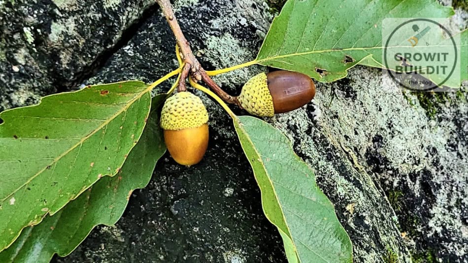 Chestnut Oak acorns are some of the largest, coming in up to 1-1/2″ long. Swamp White Oak can overlap in size, growing more than 1″ long. The caps can be used to tell them apart somewhat though. Chestnut Oak caps are thin and really follow the form of the acorn. While Swamp White caps are thicker at the top.