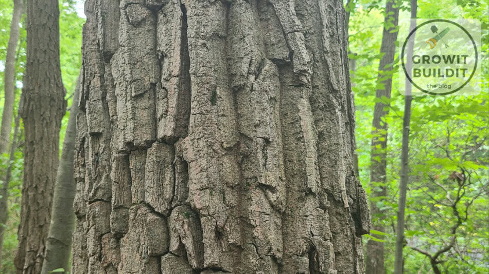 Bark is gray to brown, hard flat-topped ridges when mature. Very ‘chunky’ and thick when mature.