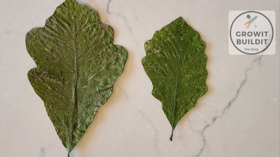 When it comes to leaves, comparing these two species can be quite difficult. Both are in the white oak family, so the tips of the lobes are blunt or rounded. Both have fuzzy undersides. And both have the same overall shape.