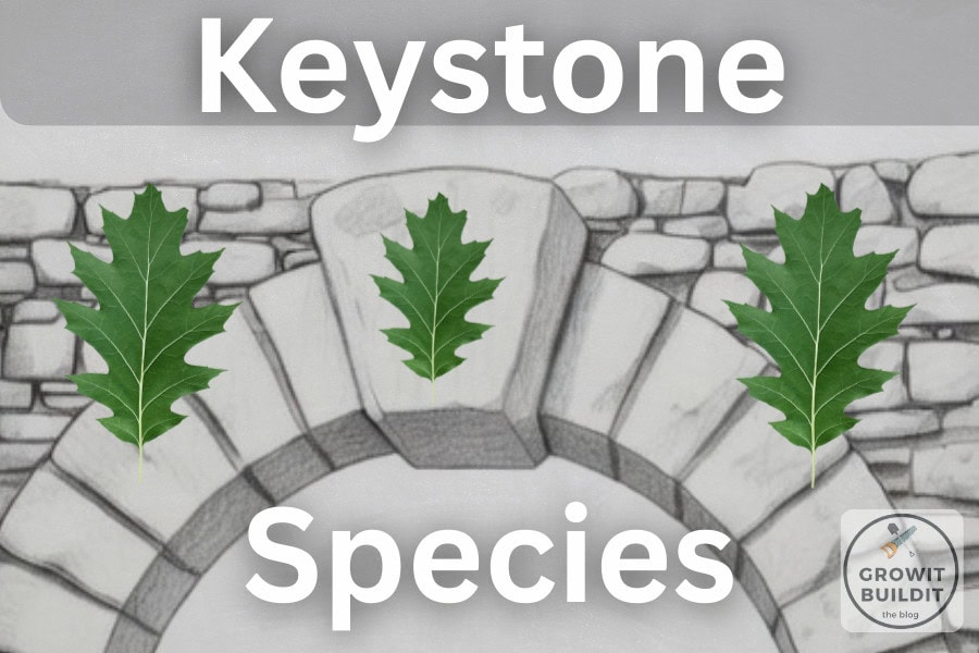 In short, a keystone species is any species whose removal would result in a disruption to the local ecosystem and significantly reduce the biodiversity[1]. The term keystone is analogous to how a central keystone holds up an arch or bridge – if you remove the keystone, the whole structure collapses. Keystone plants, are simply species of plants that meet the aforementioned criteria. Common examples of keystone plants in North America would include Oak, Hickory[3], or native cherry trees, Goldenrods, and Asters.