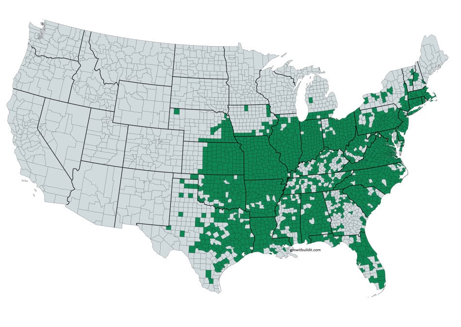 - Native range is from the great plains to the Atlantic Ocean