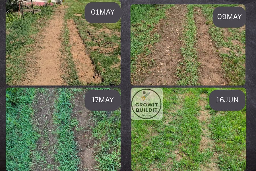 After clearing the grass, I did nothing else. I just left the strips and returned a couple times to check and see how they were doing. And in short, the grass just reclaimed the land. There was no explosion of weeds. I have a video that will release soon that documents the entire experiment quite well. But until then, please use the collage below for proof of my claims.