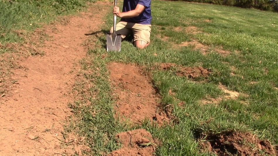 Right next to this strip I decided to make another test. I used a flat garden spade to make another strip, removing the grass with this patented method.